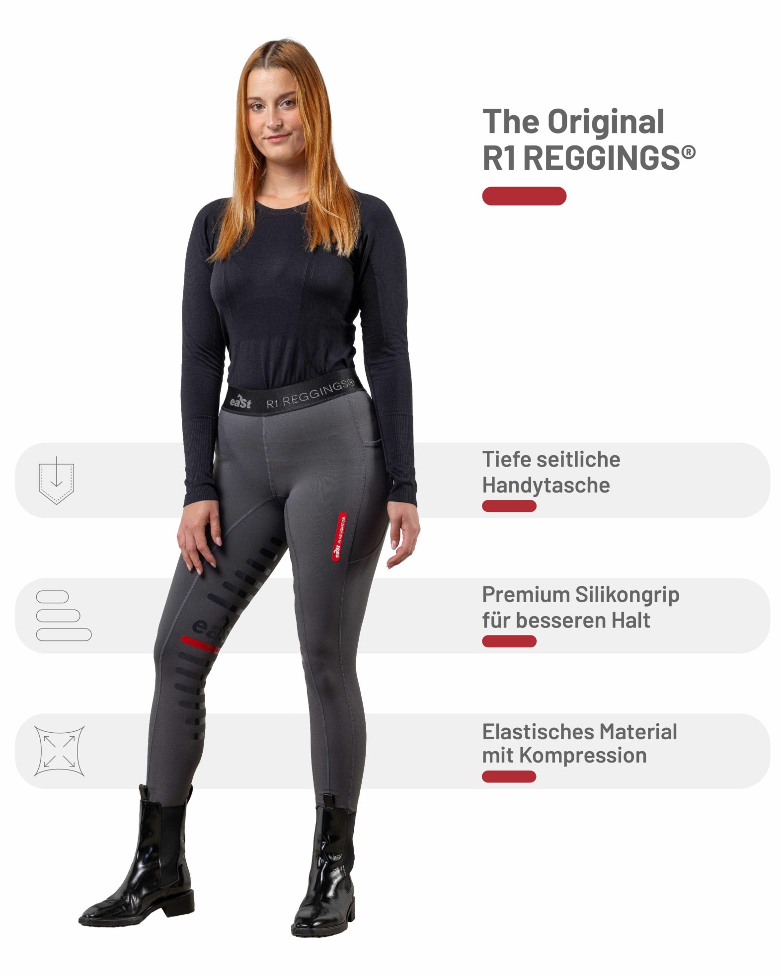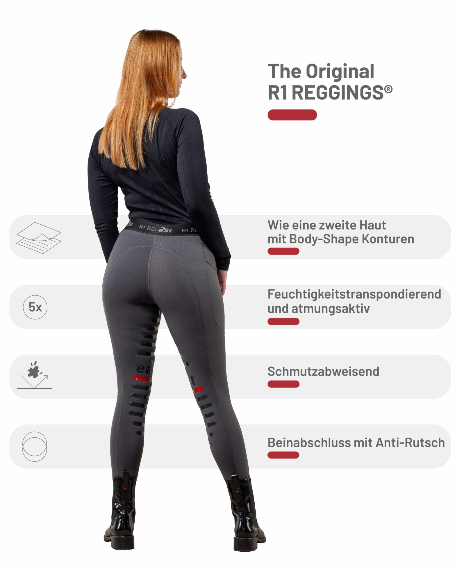 Woran erkennst du die Original Reggings? Am klassischen eaSt-Label in Rot, dem premium Silikongrip, zwei praktischen Seitentaschen, Body-Shape-Konturen, rutschfestem Bund und vielen weiteren hochwertigen Funktionen. Das macht die Reggings unverzichtbar für jeden Reiter.
