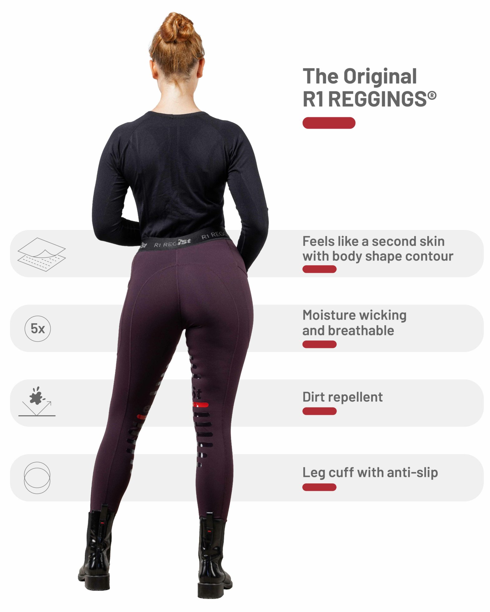 Entscheide dich für das Original! Die Reggings R1 ist die original Reitleggings. Das hochelastische und bewegungsfreundliche Material sorgt für den ultimativen Tragekomfort. Es ist nicht nur feuchtigkeitstransportierend und atmungsaktiv, sondern auch schmutzabweisend – alles, was ein Pferdemensch braucht. Entscheide dich für das Original!