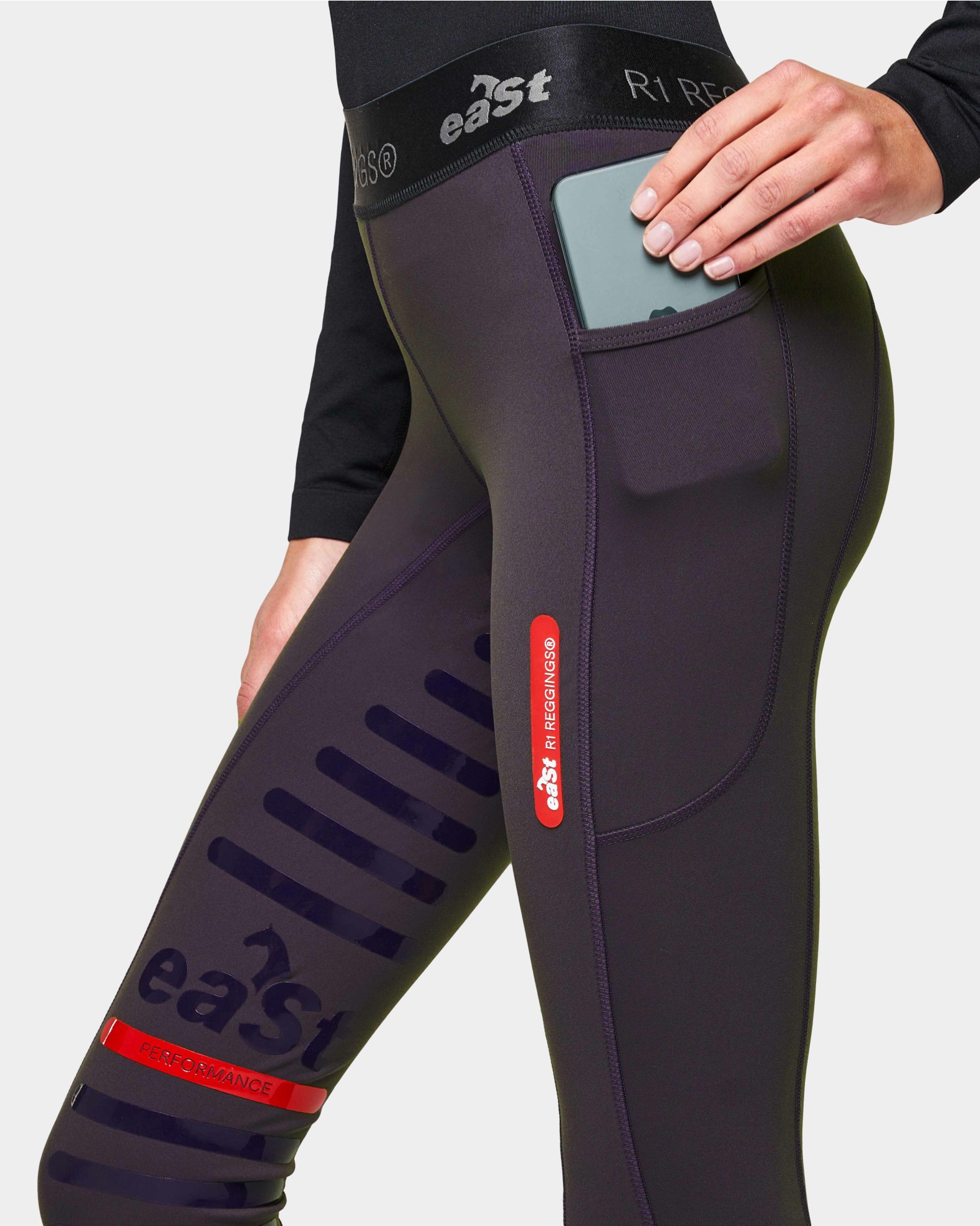 Grip Woran erkennst du die Original Reggings? Am klassischen eaSt-Label in Rot, dem premium Silikongrip, zwei praktischen Seitentaschen, Body-Shape-Konturen, rutschfestem Bund und vielen weiteren hochwertigen Funktionen. Das macht die Reggings unverzichtbar für jeden Reiter.