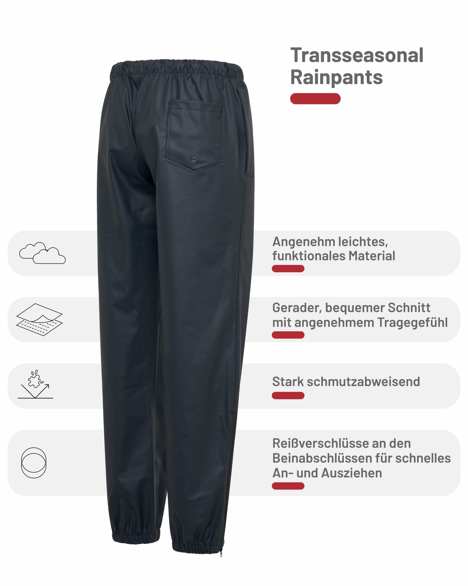 Die Transseasonal Rainpants von eaSt ist ein echtes Essential für die verregnete Übergangszeit. Die wasserdichte und windabweisende Membran hält Nässe zuverlässig ab.
