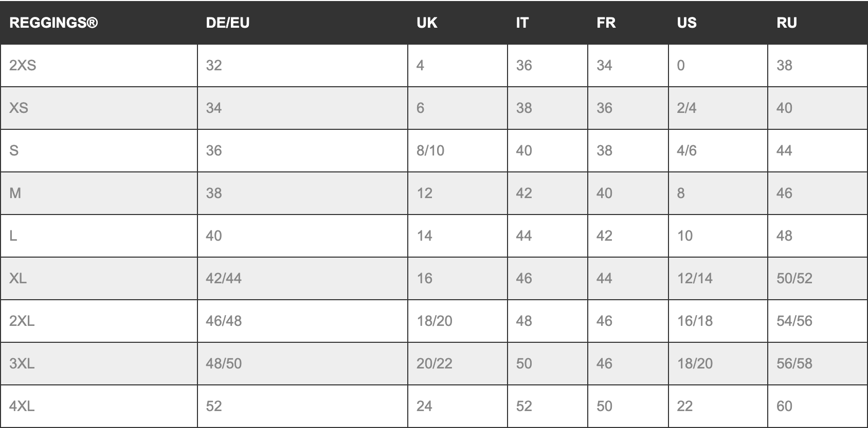 Unsere Größentabelle hilft dir dabei, die richtige Größe für dich zu finden – denn dein Körper verdient Kleidung, die wirklich sitzt und dich optimal unterstützt.